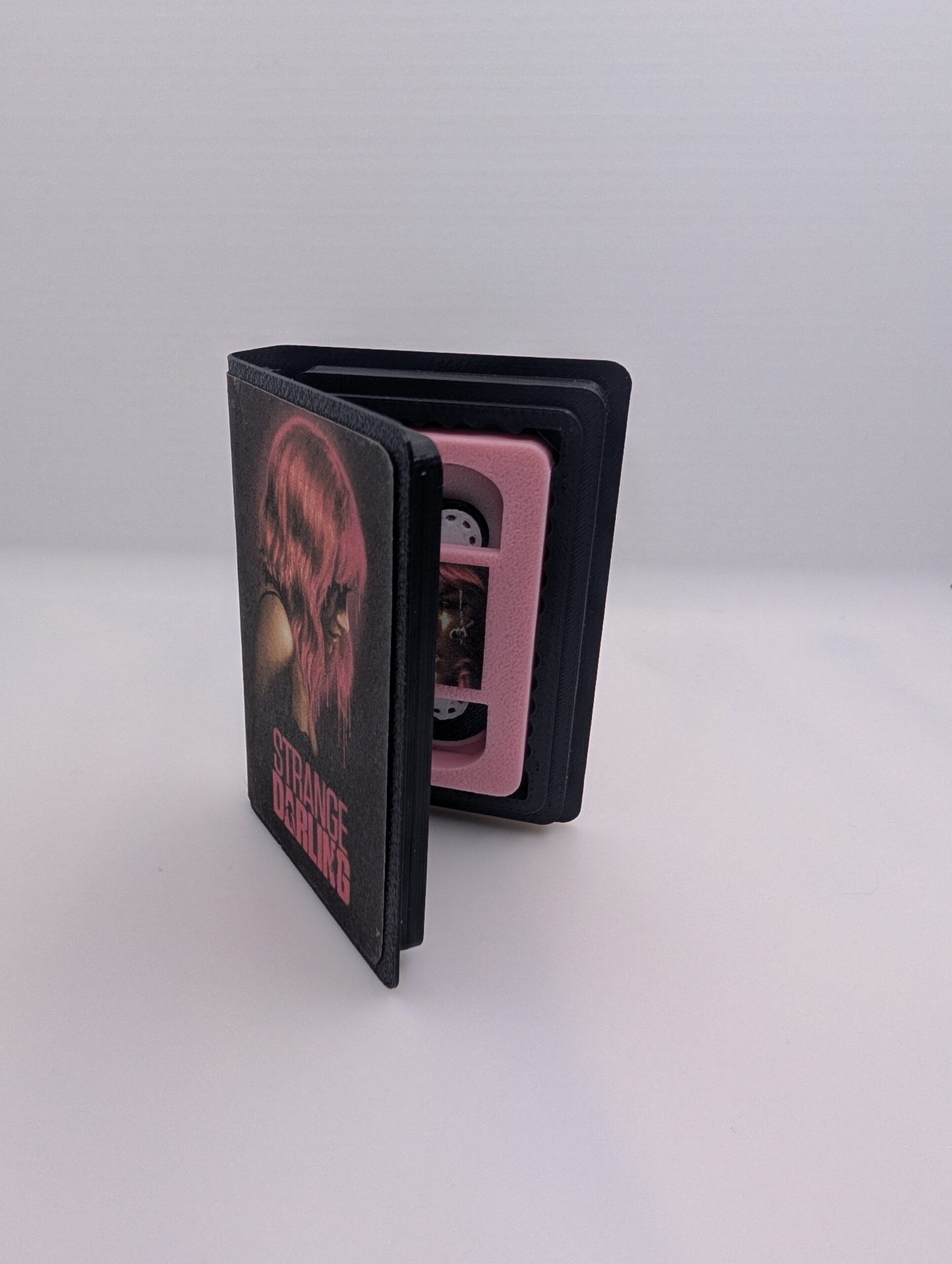 This Strange Darling miniature VHS captures that exact feeling—just smaller. I don’t just print a box; I hand-assemble and distress the cover art to give it that authentic, ‘lived-in’ vintage look. It isn’t a pristine factory toy; it’s a tiny tribute to physical media.